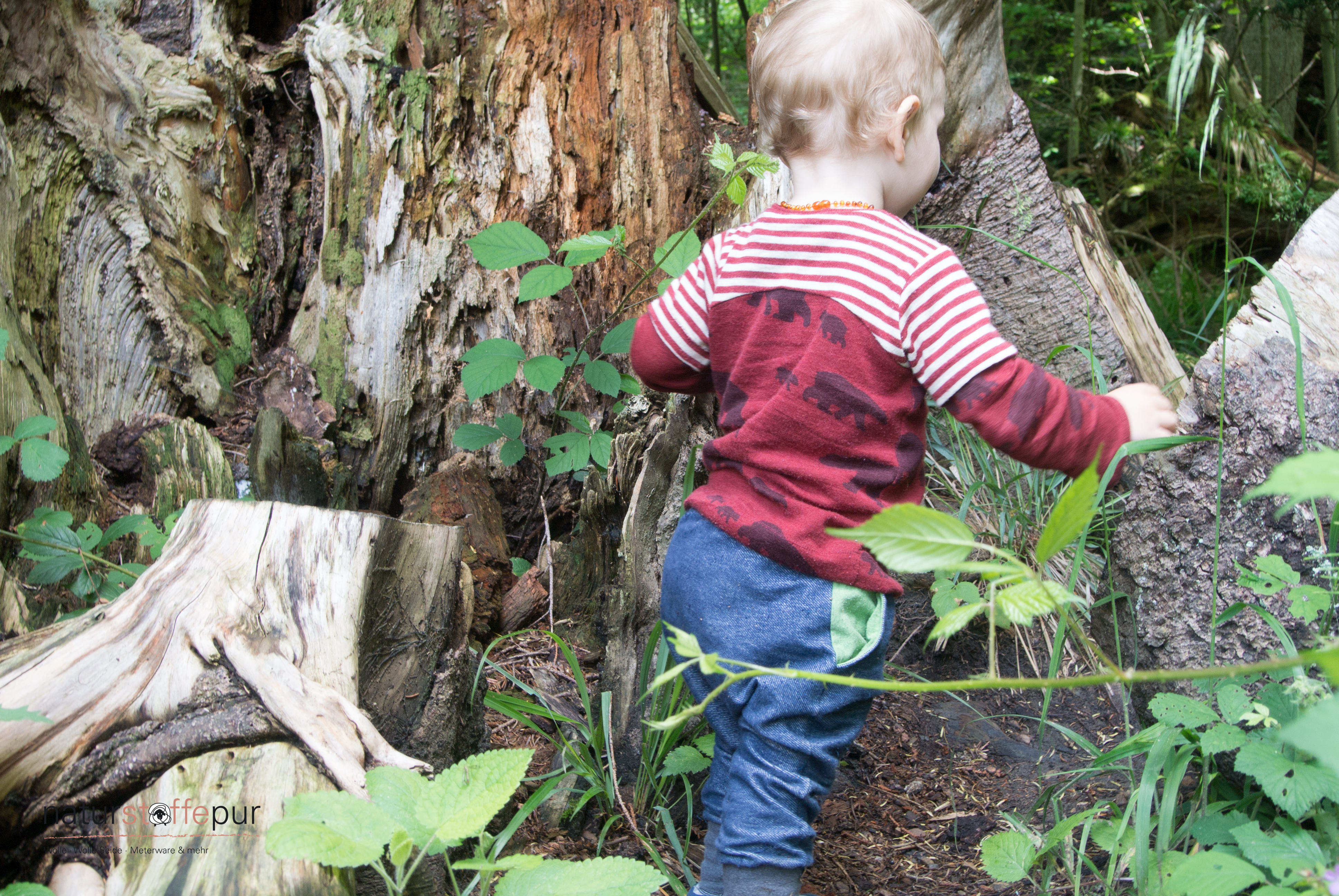 So persönlich wie der erste Kontakt war, stehe ich zu unserer Verabredung dann mitten in der Wohnung der vierköpfigen Familie, wo sie mich an ihrem Naturstoffepurleben teilhaben lässt. Wo erlebt man das heute noch, nicht einfach nur Kunde, sondern komplett miteinbezogen zu sein. Im Stoffzimmer liegen die Ballen sortiert in den Regalen, kostbare Wolle/Seide Ballen neben Wollwalk, Wollfleece und Wollfrottee. Die umsichtige Haltung und Einstellung der leidenschaftlichen Mutter passt zum Konzept der edlen Stoffe und verkörpert die bemerkenswerte Philosophie von Naturstoffepur, die voller handelnder Hoffnung für die Zukunft ist.