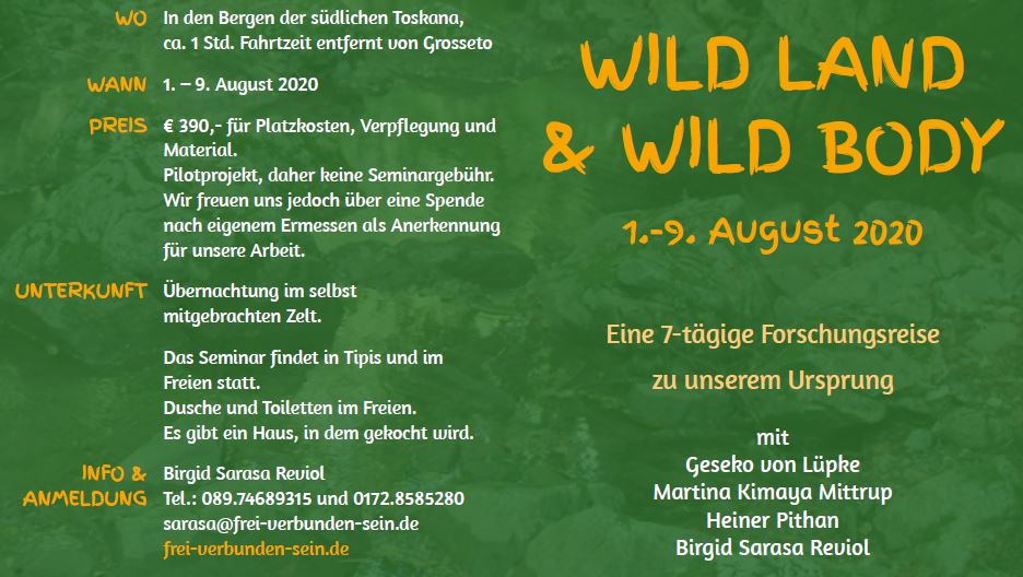 Wenn du großes Interesse an einem 7tägigen Pilot-Projekt in der ersten Augustwoche 2020 haben könntest, dass ich nach drei Jahren Vorbereitungszeit in diesem Sommer mit drei KollegInnen in einem großen Wildnisgebiet in den Bergen der südlichen Toskana verwirklichen will. Es lautet