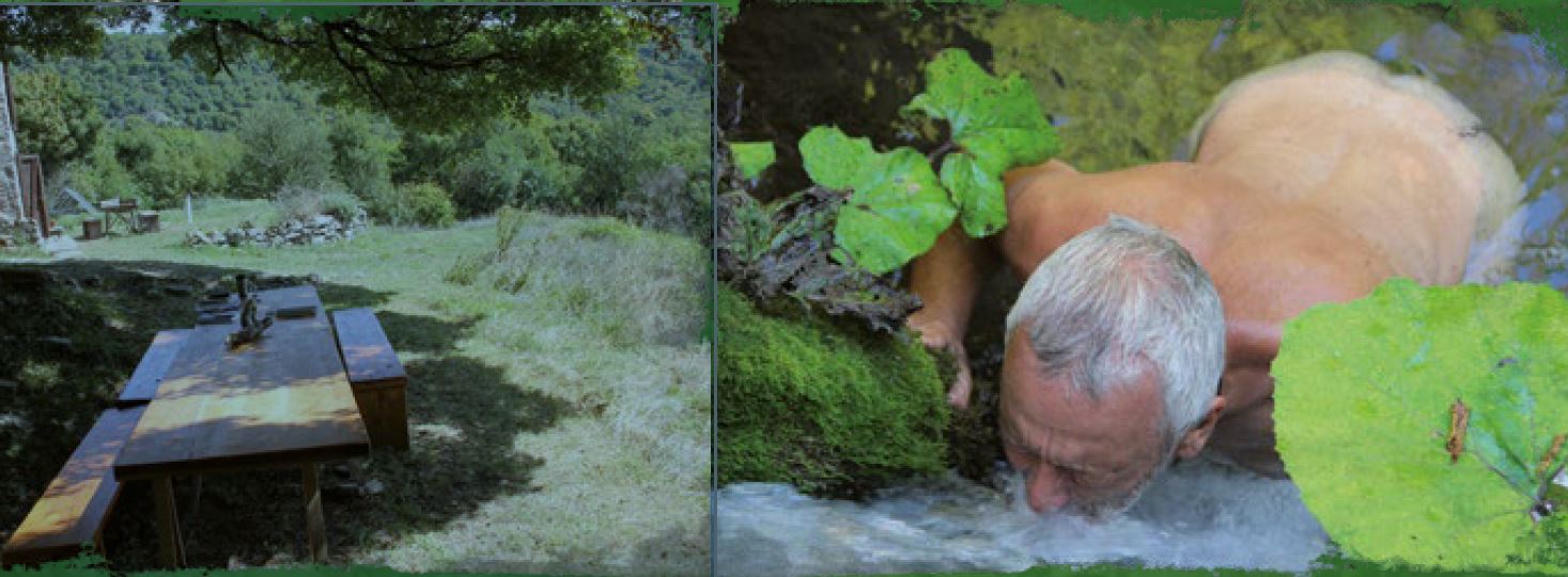 Die abgeschiedene Wildheit des Platzes verlangt den Verzicht auf zivilisatorischen Luxus und Konsumgüter. Du schläftst draußen, im Tipi oder mitgebrachten Zelt, von der Sonne aufgeheizte Duschen sind unter freiem Himmel, ein Kompostklo mit Donnerbalken gehören dazu. Aber wir haben eine Küche und im Haus elektrisches Licht. Die hohe Lage des Gebiets reduziert die italienische Sommerhitze, ein kalter Bach lädt zum erfrischenden Bad ein, die Nächte sind mild.