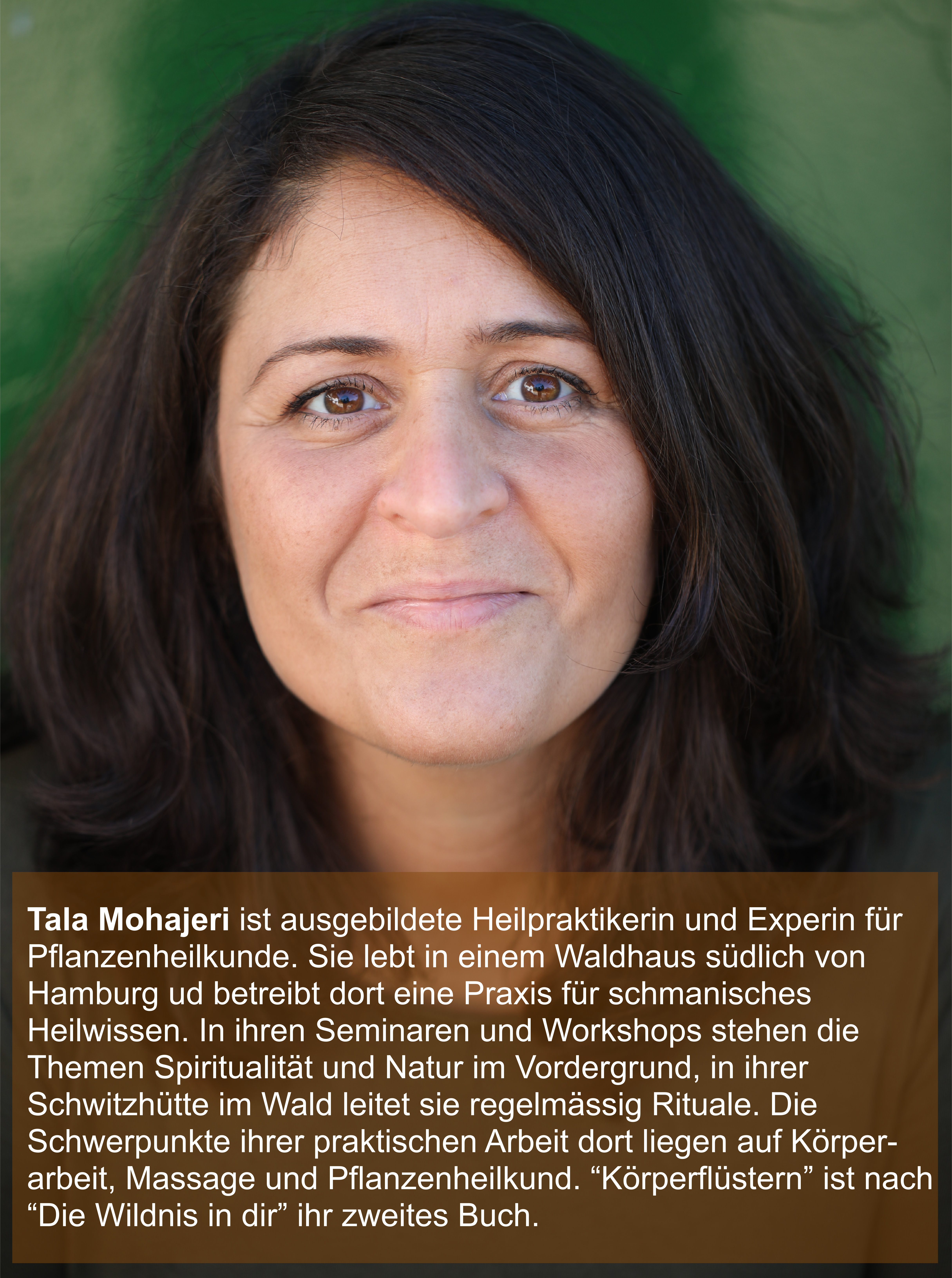 Wir sprachen mit Tala Mohajeri, Heilpraktikerin und Heilerin, sie hat in ihrer jahrelangen praktischen Arbeit ihren Patient*innen dabei geholfen, sich auf ihre Körperweisheit zu verlassen, Körperbedürfnisse zu verstehen und ihre Genesung aktiv mitzugestalten. Mit praktischen Überungen, Atemtechniken, Affirmationen und Meditationen zeigt sie in diesem Buch “Körperflüstern” den Weg zu einem neuen Körperempfinden, mit dem es gelingt, die Signale des eigenen Körpers wieder wahrzunehmen.