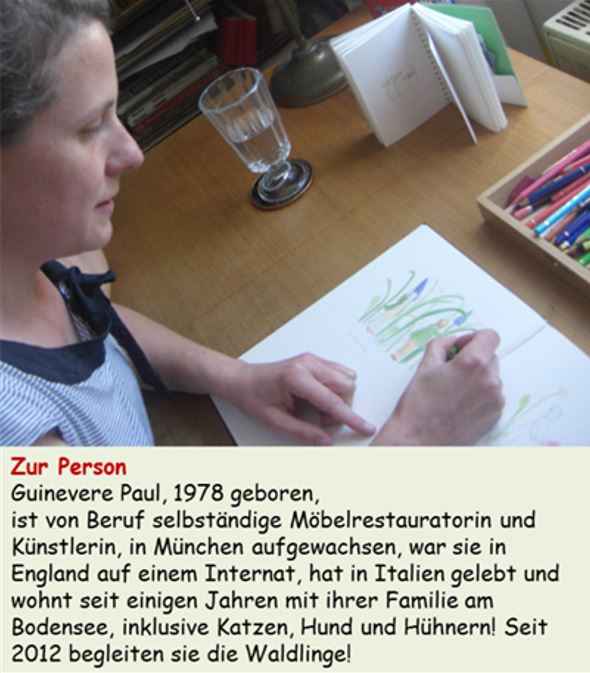 Seit dem Sommer 2016 begleiten wir nun jedes Jahr die Waldlinge auf ihrer Jahresreise mit den Zeichnungen von Guinevere Paul. Wir sind immer noch herzerwärmend verliebt in diese wunderbare Fantasiewelt, in der die kleinen Wesen leben. Das kleine Volk der Waldlinge, die aus der talentierten Hand der Künstlerin geboren werden und unsere Herzen berühren. Ob Postkarten, Lesezeichen, Adventskalender oder die Jahresplaner, überall sind die lieblichen Zeichnungen zu sehen, die uns die Welt mit den Augen der Waldlingen offenbart. Ihre Kleider aus Naturmaterialien, auf dem Kopf ein Eichelhütchen, das Kleid aus einem Löwenzahnblatt, kriechen sie mit Raupen um die Wette. Schweben mit der Pusteblume im Wind oder tanzen Reigen mit den Blättern. Jedes Bild zeigt die verspielte Einfachheit ihres Zusammenlebens mit der Natur.