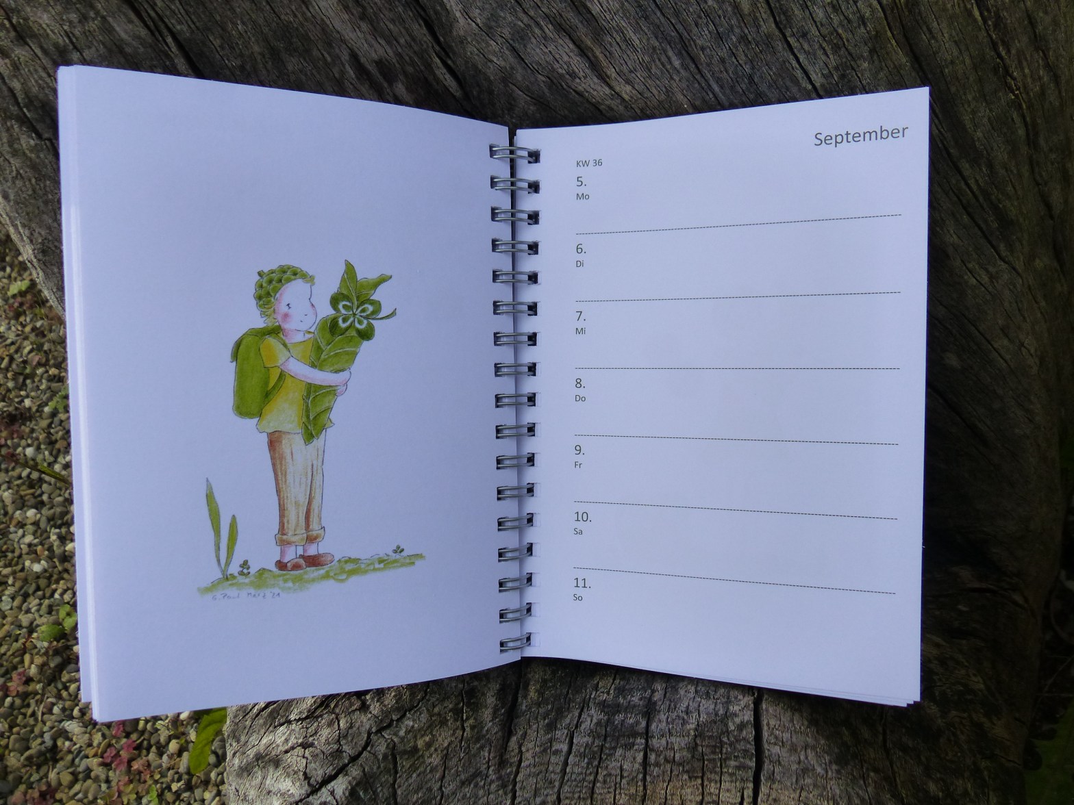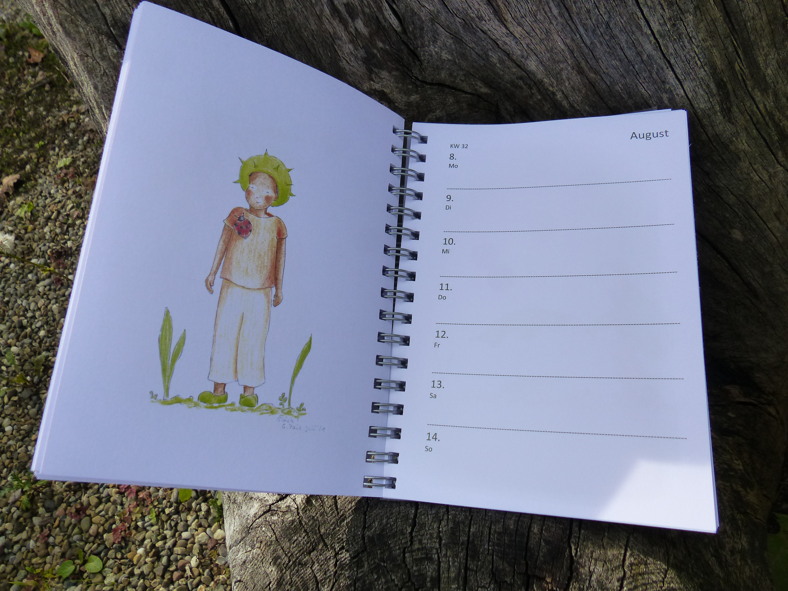Für den Kalender 2022 war Guinevere Paul berührt von dem Massensterben der Insekten und hat in ihren Zeichnungen liebevoll gezeichnet, wie die Waldlinge im Einklang mit den Insekten zusammenleben.