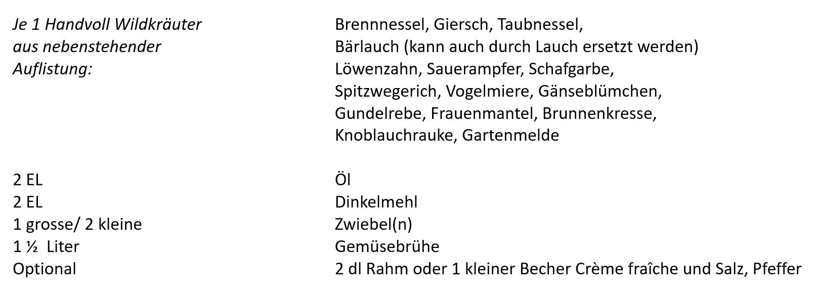 Frühling ist meine liebste Jahreszeit. Dieses grosse Erwachen und von neuem Erblühen. Wenn die Tage länger werden, die Sonne mit ihrer Kraft die Pflänzchen aus dem Schlaf lockt, dann bin ich am liebsten draussen unterwegs und empfinde eine tiefe Zufriedenheit. Ich möchte nun eines meiner liebsten Frühlingsrezepte vorstellen: die 9- Kräutersuppe. Man kennt sie auch als Gründonnerstags-, Kelten-, oder Unkrautsuppe. Sie wird aus den ersten neun Frühlingskräutern gekocht. Wobei das mit den neun Kräutern immer etwas variiert. Manchmal finden sieben verschiedene Kräuter den Weg in meinen Topf und manchmal sind es über zehn. Ganz nach Lust und Laune ergänze ich die Suppe mit anderen Gartenkräutern oder dem ein oder anderen Gemüse. Je nach Region und Sammelerfolg schmeckt die Suppe unterschiedlich und genau das liebe ich so an ihr! Auch die Menge der einzelnen Kräuter überlasse ich dem Sammelglück und meinem Bauchgefühl- lecker schmeckt es am Ende sowieso.