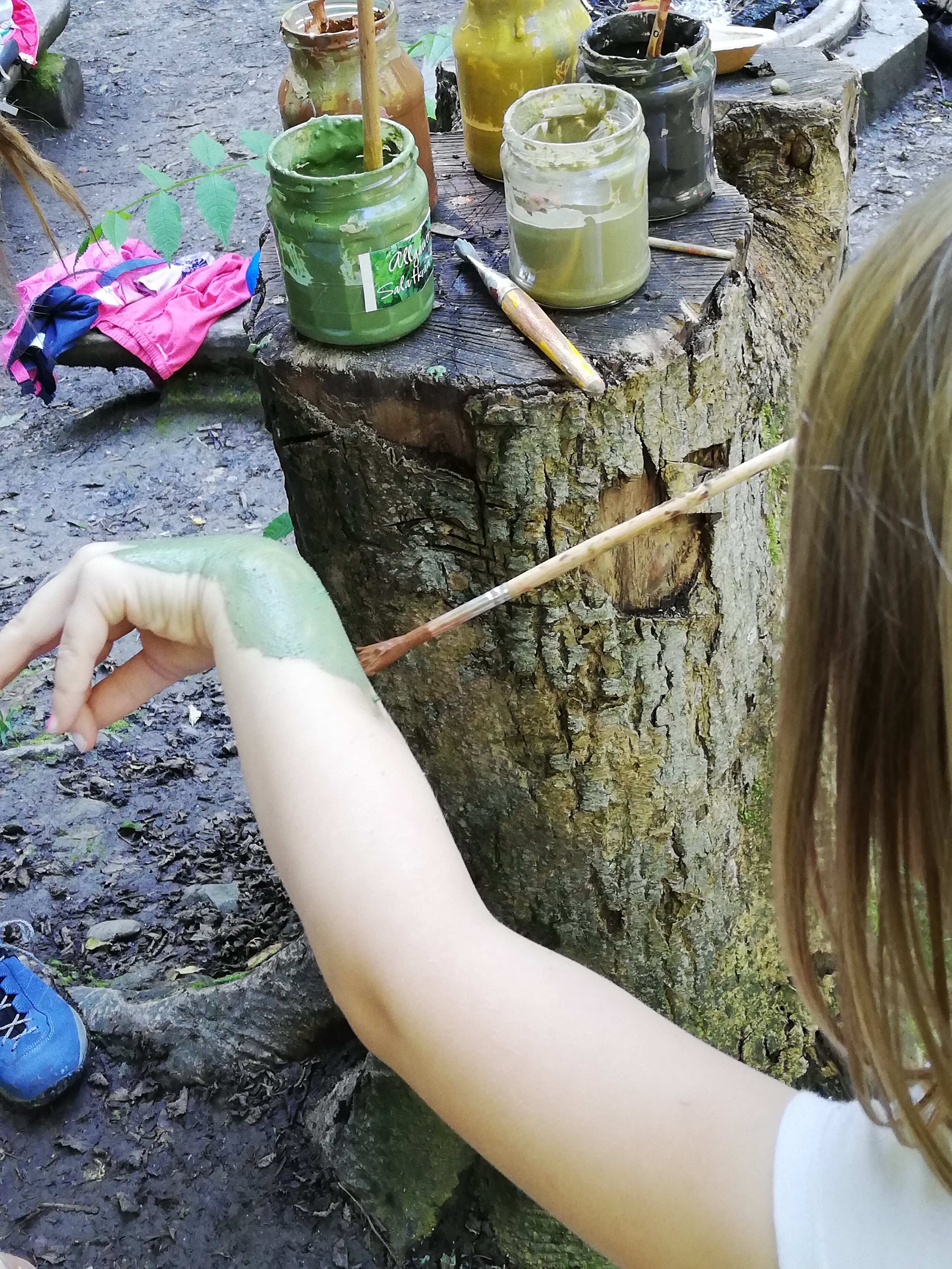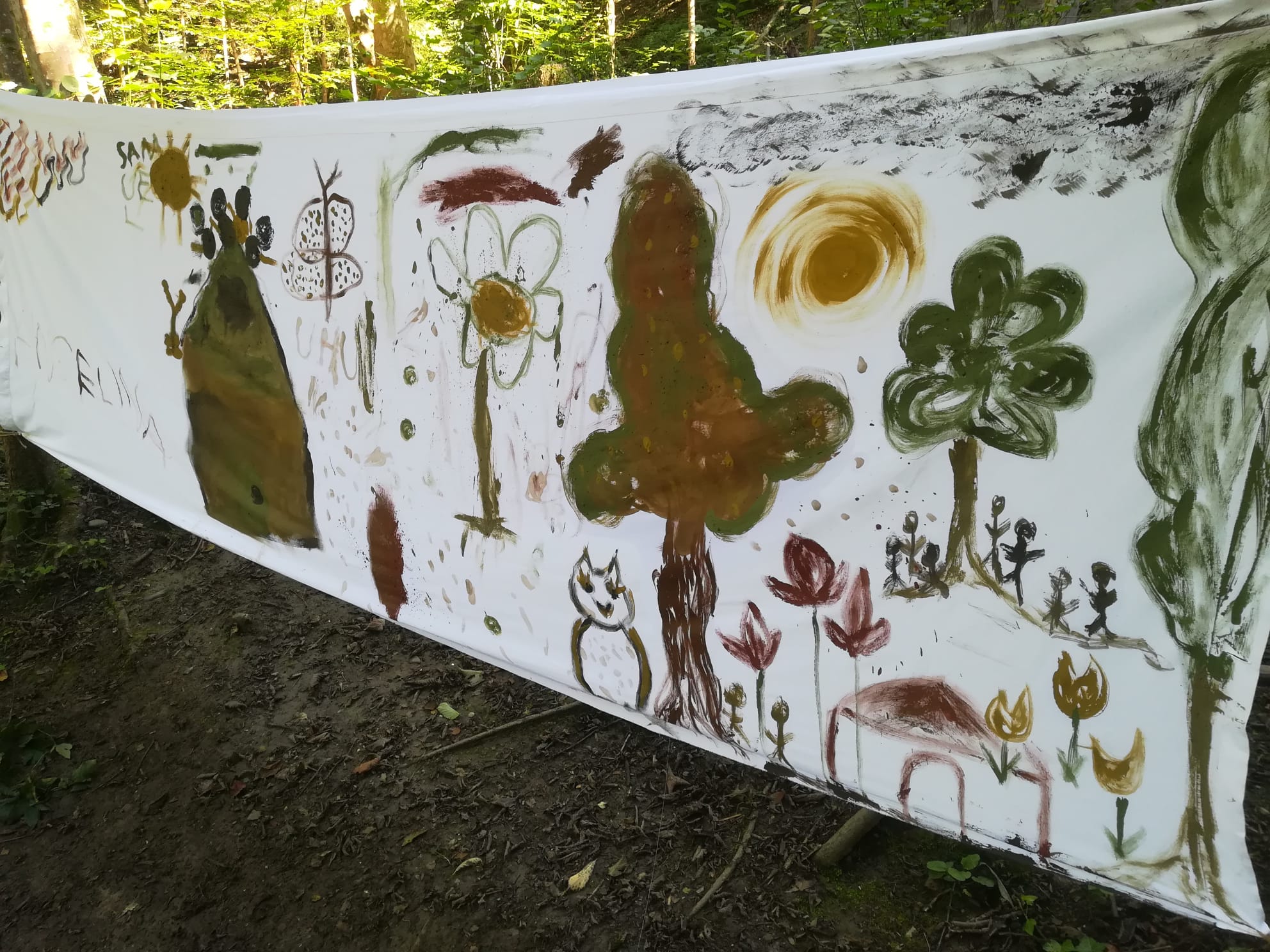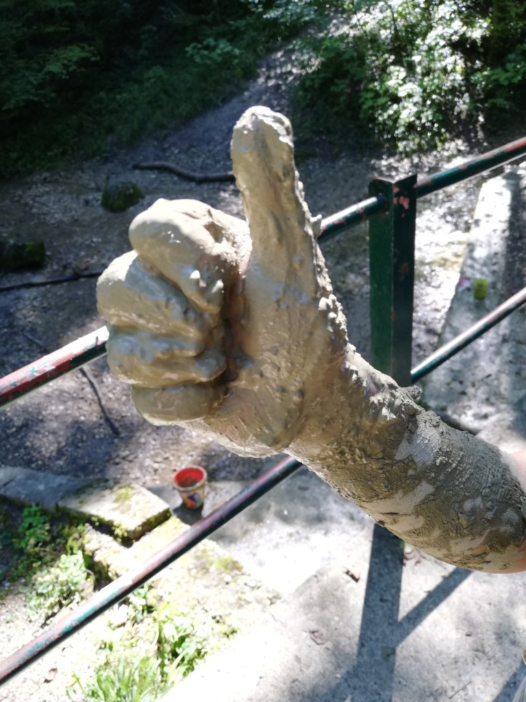 Was kann man alles mit Lehm machen? Den Waldnachmittag erleben die Kinder nach den Grundlagen der Naturpädagogik. Seit dem Sommer bis in den Herbst war das Motto „Lehm aus dem Bachbett“. Zuerst knietief die Berührung mit dem Lehm am Bach, die Stiefel blieben stecken und der breiige Lehm ging durch den Stoff und Nähte der Kleidung durch. Durch Kneten, Formen, Matschen, Krümeln, Eintauchen, Glitschen und Schmatzen lernt das Kind begreifen. Mal fühlt es sich nass, feucht, kühl, hart, breiig oder eklig an. Das Formen ist ein emotionaler und schöpferischer Akt, das zum Leben erwacht, wenn Landschaften oder Figuren entstehen. Erde wird durch Kinderhände zum Leben erweckt. Spielerisch formen die Kinder ihr Denken und bewegen ihre Fantasie. Das Spielen und Formen mit Erde, Lehm und Matsch, ist wie ein Malen von dreidimensionalen Bildern. Erde ist nicht gleich Erde. Es ist ein ganz konkretes «In-die-Hand-nehmen» und Bearbeiten eines Naturproduktes, das eine direkte Kontaktaufnahme mit ihrer äusseren und inneren Welt darstellt. An den Nachmittagen wurde auch Teamgeist gepflegt, in dem sich die Kinder gegenseitig wieder aus dem lehm zogen oder frei schaufelten und mit Haut und Haar lehmverkrustet nach Hause kamen. An den folgenden Nachmittagen sammelten sie den Lehm in Eimern und transportierten ihm im Bachbett. Mit der Zeit entdeckten die Kinder die Formbarkeit des Lehms und es entstanden fantasievollen eigene Lehmschnecken bis zu ganze Familien. Naturpädagogisch wurde das Thema Lehm jedes Mal mehr vertieft. Mit selbst gemachter Lehmfarben wurde die Brücke und die Bäume am Bach angestrichen und kreative Pinselstriche füllten das zwischen den Bäumen aufgehängten Leintuch. Das Lernen ist ein ganzheitliches Eintauchen mit allen Sinnen und bereitet auf das Leben vor.