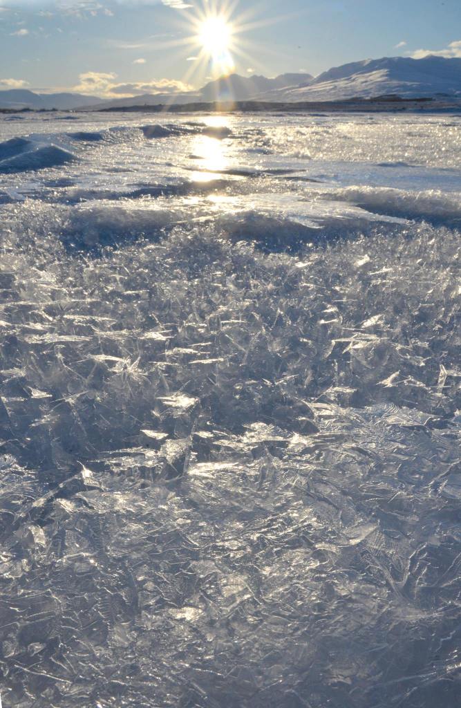 Eine sehr tiefe Verbundenheit, fühle ich auch mit dem Meer, mit all dem geheimnisvollen Leben unter der Membran, die diese beiden Welten mit unterschiedlichen Landschaften und Fähigkeiten zum Überleben trennt. Einmal hatte ich eine Trommelreise unternommen, um meine Wurzeln und mich selbst als Kind zu treffen. Ich fühlte eine große Angst, weil ich immer eine Fremde gewesen bin und nie eine Verbindung zu einem bestimmten Ort oder Volk gefunden hatte. Ich ging geistig in die Luft, ich befand mich in keinem Ort der Kindheit in Island oder Norwegen, also ging ich auf dieser Reise weiter bis nach Afrika und sah mich selbst im Busch „Löwen und Krokodile jagen“. Ich war acht Jahre alt, mit nackten Füßen unterwegs, und ich konnte sehen, wie ich selbst als Kind zu mir als Erwachsene aufblickte, während ich meine Zehen in den Sand am Fluss bohrte. Auf einmal verstand ich, wo meine Wurzeln sind. Das Gefühl der Zehen im Sand im fließenden Wasser, das zum großen Meer hinunterfließt. Mit dem Meer fließen meine Wurzeln über unseren ganzen Planeten und meine Wurzeln sind dort, wo meine Zehen sind, und das erklärte mir so viel. Ich schaue auf die Membran, die das Leben in der Luft vom Leben im Wasser trennt, in meinem Kopf verbindet das Meer den ganzen Planeten als eine grosse Haut, die immer in Bewegung ist. Immer mit einem Glanz versehen, irgendwo sind immer Gefühle, die mich immer etwas zu lehren haben und meine Augen fühlen Frieden.