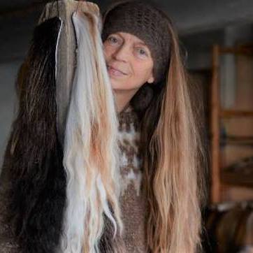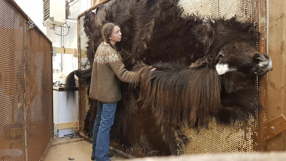 Vor etwa 35 Jahren war sie als junge Studentin gekommen, um im Rahmen eines Projektes im Svafarðardalur Bäume zu pflanzen. Wie das Leben so spielt, lernte sie einen Mann kennen, und blieb, für lange Jahre als Milchbäuerin im Skíðadalur. Einsamkeit, mangelnde Sprachkenntnis und lange Winterabende brachten sie dazu, sich mit den alten Handwerkstraditionen der Isländer auseinander zu setzen. Spinnen, Weben, die Verarbeitung von Pferdehaar in Flechtarbeiten – und das Nutzen der Häute nach dem herbstlichen Schlachten.