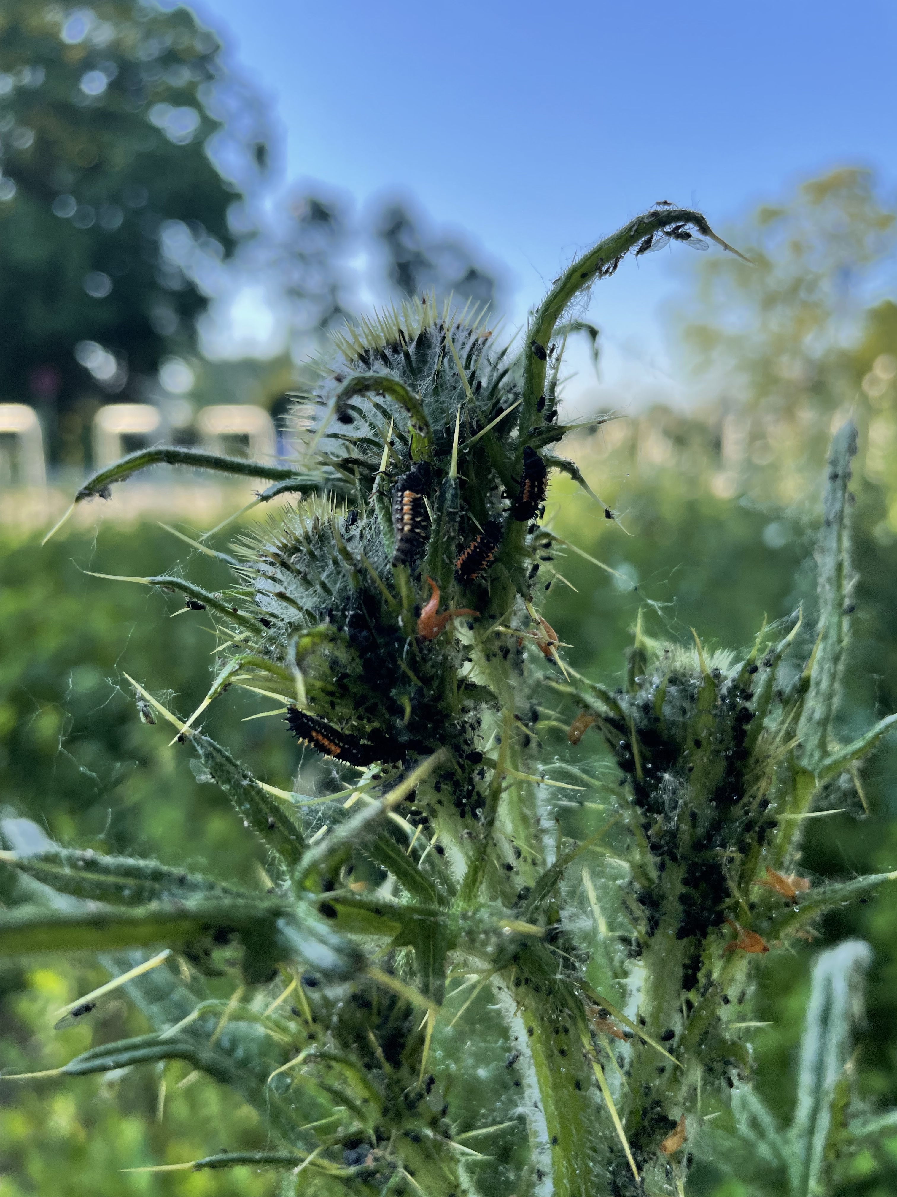 Blattläuse in Ruhe lassen, zum Beispiel. Aber im Ernst: Klein anfangen bringt viel, am besten mit dem, was leichtfällt. Das geht auch, wenn man keinen Garten hat. Weniger Fleisch zu essen, ist einer der Ansatzpunkte. Weltweit wird ein Drittel der Getreideernte an Tiere verfüttert. Bis zu 90 Prozent der Nahrungskalorien gehen dabei verloren, weil die Tiere sie zum Aufbau der eigenen Körpersubstanz benötigen. Würden wir direkt die Pflanzen essen, und die Nahrungskalorien nicht über den Umweg über Schwein, Kuh oder Huhn zu uns nehmen, dann würden von der gleichen Fläche Acker viel mehr Menschen satt. Oder es müsste nur noch ein Bruchteil der Anbaufläche so intensiv als Ackerland genutzt werden – und würden damit nicht als Raum für die Entfaltung der Nahrungsnetze ausfallen. Und: ob im Kleingarten oder im Stadtpark, bitte nicht über Brennesseln und Disteln und anderen Wildwuchs beschweren oder darüber, dass Laub liegen geblieben ist . Wenn man denkt: »Herrje, wie sieht es denn hier aus?« dann ist es für die Biodiversität genau richtig.