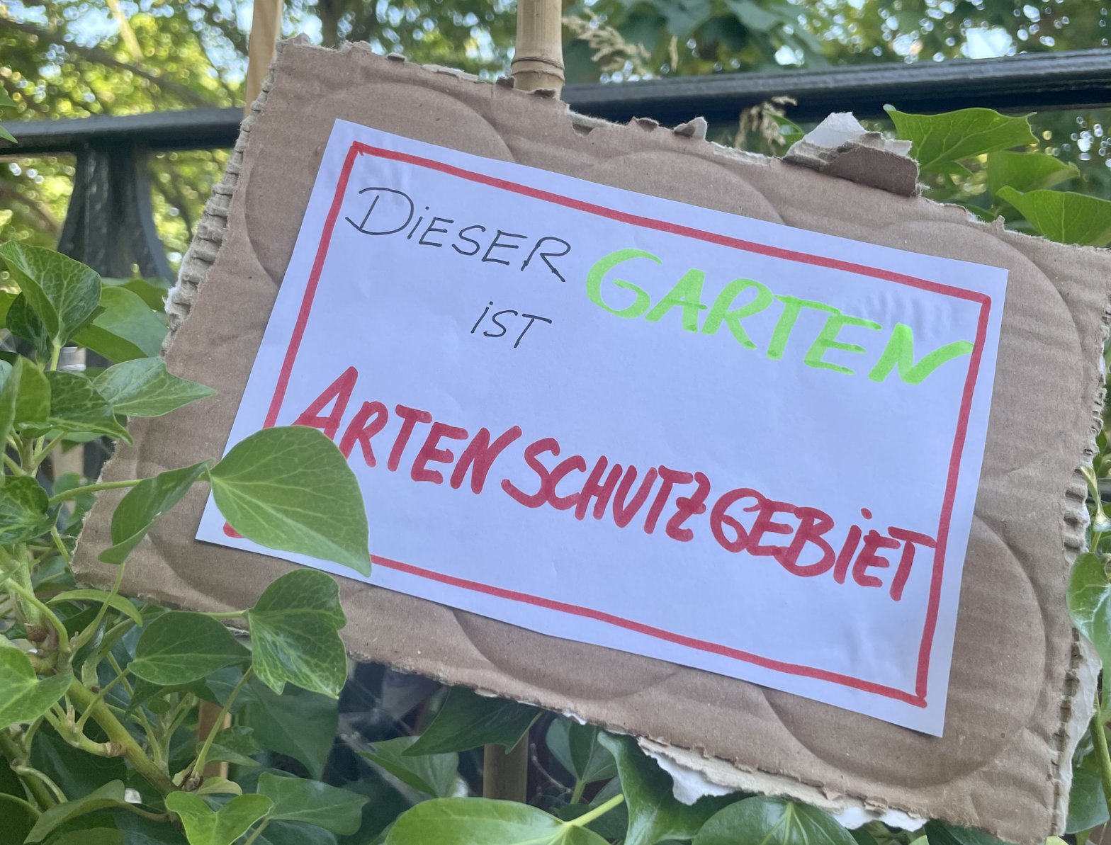Meine Erfahrung ist oft, dass viele Menschen nicht aus böser Absicht im Garten und in der Natur unökologisch handeln. Sondern oft, weil ihnen die Informationen fehlen, weil sie es halt so machen, wie man es früher gemacht hat, Beete umgraben, Laub wegholen, alles schön ordentlich glattziehen; ein Teil sicherlich auch, weil man Angst hat, aufzufallen in der Nachbarschaft. Das zu ändern finde ich wichtig und schön; weniger aufräumen, ein bisschen Unordnung – Wildnis – ist der beste Artenschutz, den man im Garten haben kann. Es ist so entspannend und entstressend, nicht immer gegen irgendwas anzukämpfen, was nicht nach Plan wächst, Moos, Giersch, Disteln. Sondern all das einfach zu lassen und sich immer wieder überraschen zu lassen. Ja, dann wächst da eine riesige Distel im Staudenbeet, war so nicht geplant, aber wenn jeden Tag die kleinen bunten Distelfinken den Garten besuchen, um sich an den Samen sattzufressen, ist das ein schönes Schauspiel, Ein Garten voller Natur, eine Umwelt voller Pflanzen und Tiere eine ganz andere Energie, es ist Leben darin und man fühlt sich verbunden, kaum tritt man nach draußen ins blühende Grün, in dem es zwitschert und summt. Dieses Gefühl der Verbundenheit das wünsche ich jedem.