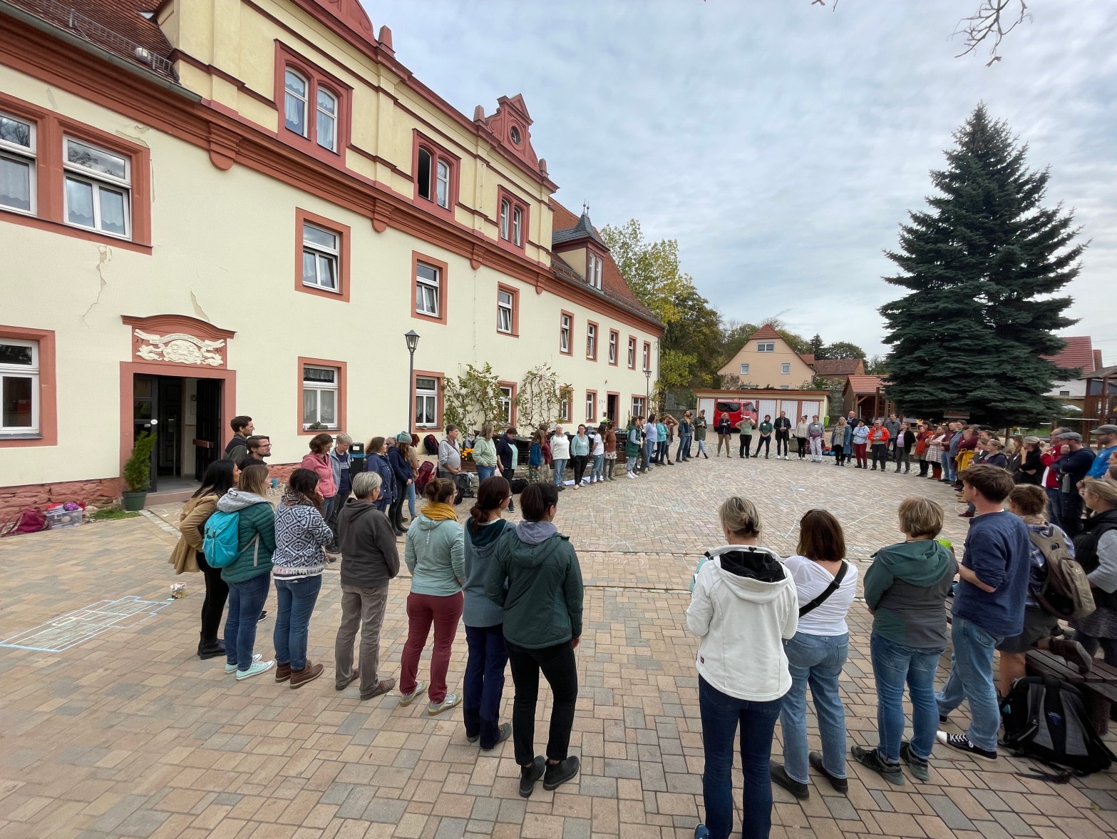 Wenn eine Idee auch in schwierigen Zeiten auf Interesse stößt, dann trifft sie wohl einen Nerv. So scheint es mit dem Thema Draußen-Unterricht zu sein. Trotz des Lehrkräftemangels, der allgemeinen Überlastung und lähmenden Nachwirkungen der Pandemie haben 108 Menschen ihren Weg ins beschauliche Bad Sulza nach Thüringen gefunden, um an der Auftakttagung vom 27. bis 29. Oktober 2022 des bundesweiten Netzwerks Draußen-Unterricht teilzunehmen.