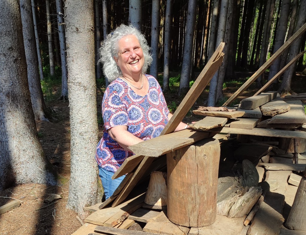 Als der Naturkindergarten Schwabhausen vor über 20 Jahren gegründet wurde, war mir klar, dass dies der «richtige Kindergarten» für meine Tochter sein würde. Nachdem meine Tochter 2001 den Kindergarten besucht hatte, wurde der Waldkindergarten auch für mich der «richtige Ort». Ich begann 2003 mit meiner Arbeit im Naturkindergarten Schwabhausen. Unseren Waldkindergarten besuchen 18 Kinder und wir bilden zu Dritt das Stammteam. Ich bin auch nach 20 Jahren nach wie vor mit Begeisterung im Wald und wäre mittlerweile wohl nicht mehr hauskompatibel. Gemerkt habe ich dies kürzlich an einem Leiterinnentreffen hier vor Ort. Da hat mich jemand gefragt, obs mir denn in meinem Alter nicht reiche, immer im Wald sein zu müssen. Wir seien doch alle nicht mehr ganz jung, ob ich nicht die letzten Jahre noch gemütlich in einem Haus verbringen möchte. Und ich habe gedacht: Was? Gemütlich? Oh nein, nur das nicht!