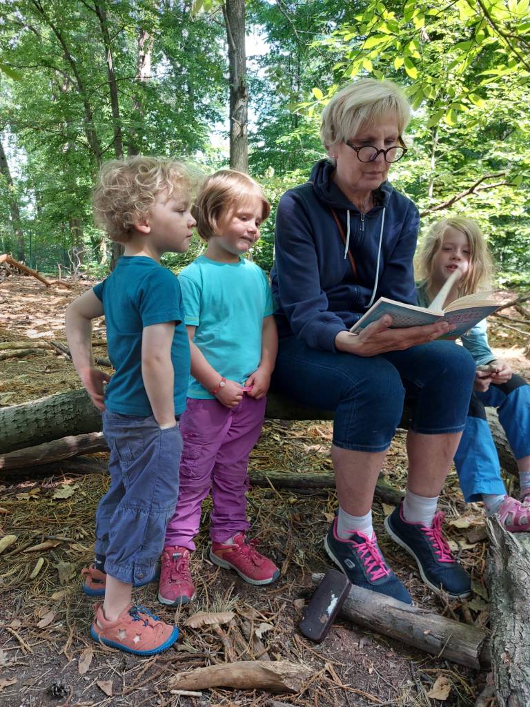 Schon als ich im Hauskindergarten gearbeitet hatte, habe ich gemerkt, dass es jedes Mal eine Befreiung war, wenn wir in den Wald gehen konnten. Gerade bei schwierigen Kindern zeigte sich, dass der Wald eine therapeutische Wirkung hat. Mittlerweile ist es für mich unvorstellbar geworden, wieder in einem Hauskindergarten zu arbeiten. Die optischen und akustischen Reize in einem normalen Hauskindergarten sind so belastend, dass wir den Wald nicht mehr missen möchten, mit seinem Geruch und Freiheit, die er bietet. Ich habe ja den Vergleich zwischen Wald- und Hauskindergarten und kann heute sagen: Im Wald zu arbeiten ist mit nichts zu vergleichen. Für mich ist die Arbeit im Wald auch mit 56 Jahren keine Belastung, sondern eine Befreiung. Meine Kollegin, die in Rente gegangen ist, sagt, sie hätte es gar nicht geschafft, bis 65 in einem Kindergarten zu arbeiten, wenn sie dies nicht in einem Wald hätte tun können.